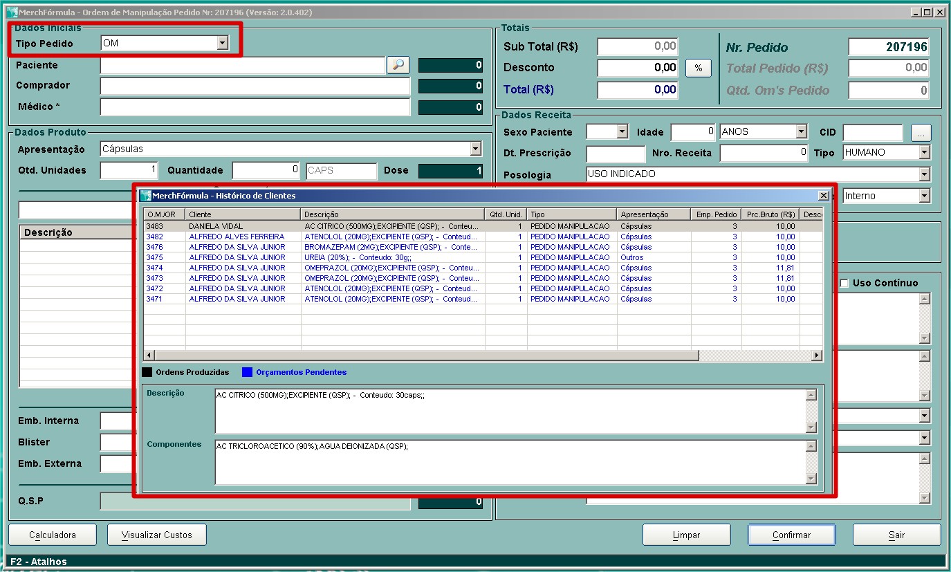 FatoA partir da versão 402 do MerchFórmula é possível habilitar uma nova rotina de Ordem de Manipulação e Orçamentos que contemplam novas funcionalidades do MerchFórmula que não estão disponíveis nas rotinas antigas. A criação dessas novas rotinas tem o intuito de melhorar a dinâmica do atendimento ao cliente e otimizar os processos internos da farmácia. Também a criação dela se fez necessário para agregar novas funcionalidades ao MerchFórmula que não eram possíveis nas rotinas antigas.