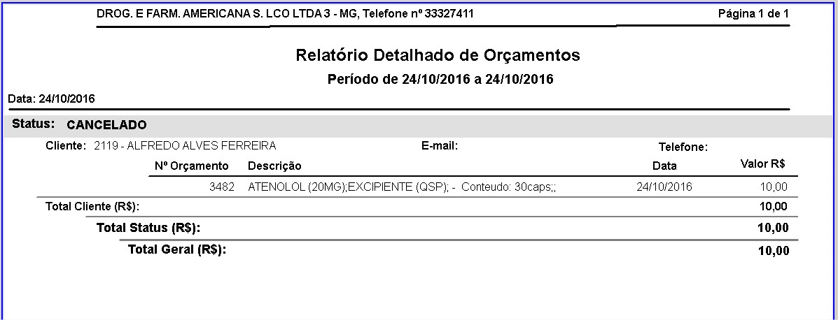 O orçamento somente será cancelado, quando for clicado no botão Cancelar.