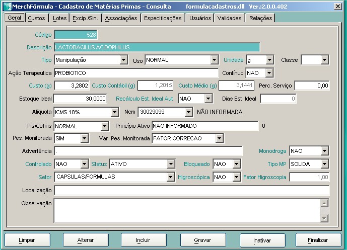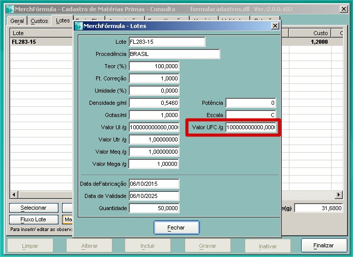 O tratamento com os Lactobacillus também foi melhorado, agora nas informações do laudo do produto foi incluída nativamente a informação de UFC/G para que seja preenchida com o laudo do fornecedor.