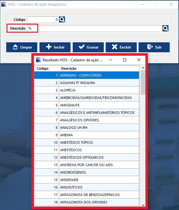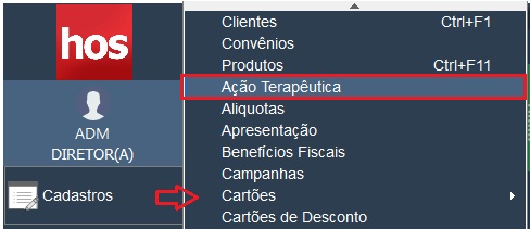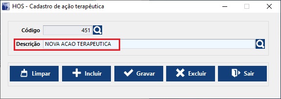 Cadastrar Ação Terapêutica no sistema HOS Farma.