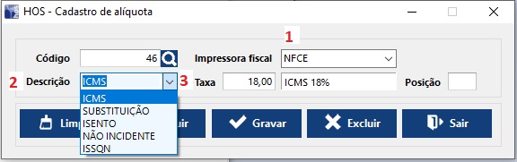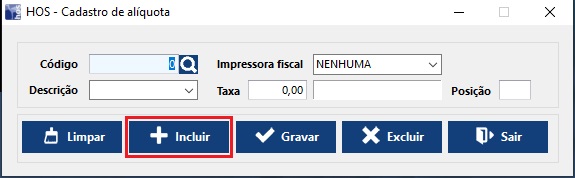 Na tela Cadastro de Alíquotas que irá aparecer, clique no botão Incluir para cadastrar uma nova.