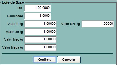 Nesta aba é possível definir uma Fórmula para produção de Lote interno da B/E. Basta adicionar os itens e seus respectivos percentuais, após gravar a fórmula.