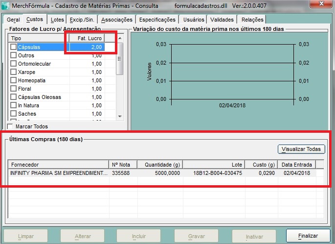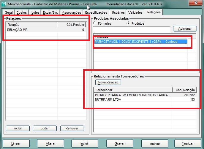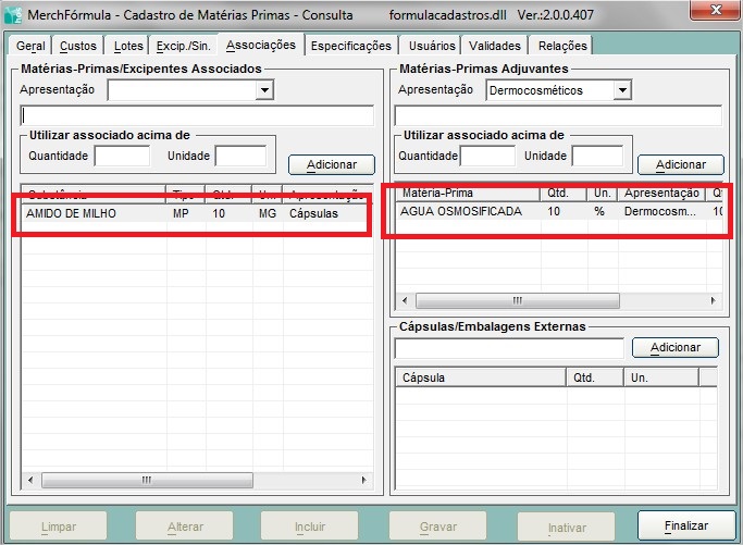 Produtos Associados: Ferramenta que possibilita relacionar a MP a um Produto do Farma, podendo assim, vender diretamente a MP. (OBS: Diferente das Fórmulas, aqui não é possível Fracionar. Vendendo diretamente com os lotes e quantidades disponíveis).