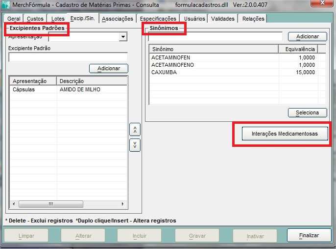 Também é possível predefinir uma equivalência para o sinônimo, será calculado em relação a dosagem.