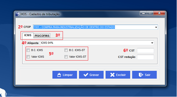 para realizar a tributação. Com o cadastro é possível configurar o CFOP