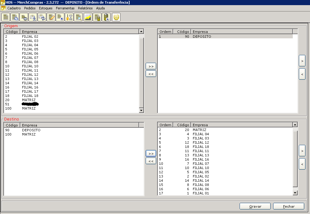 OBS: é possível montar o esquema de ordem de transferência com mais de uma origem, isto é válido para casos de redes que transferem mercadorias entre as filiais.