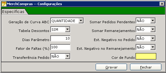 OBS: estamos transferindo por quantidade, por causa das configurações específicas definidas no MerchCompras. Para maiores detalhes, segue abaixo a imagem das configurações que estão definidas.