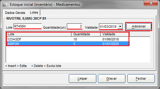 *Todos os medicamentos deves ser lançados com a mesma data de inventário.