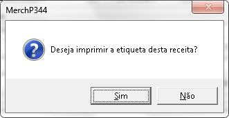 Será pedido se deve-se imprimir a etiqueta da receita.