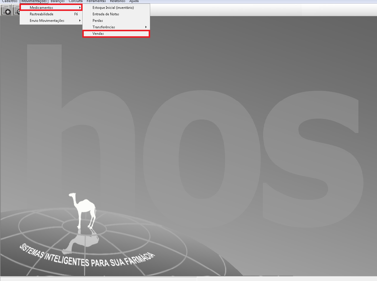Já na janela do MerchP344, acesse Movimentações >Medicamentos > Vendas, ou tecle F6 para acessar a Rastreabilidade.