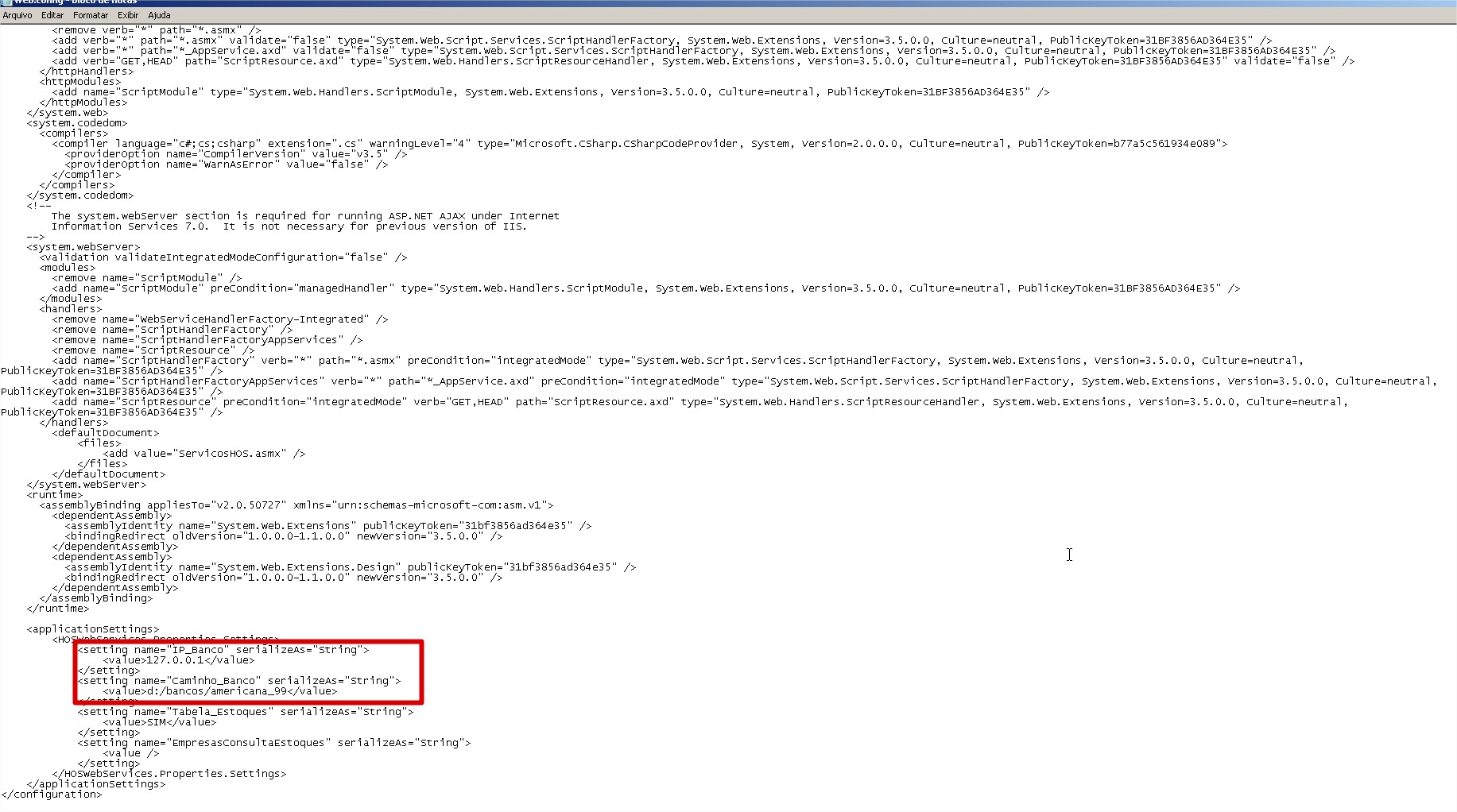 4. Após isso, é necessário ir na pasta dos arquivos do WebService e editar o arquivo do WebConfig com o IP e o caminho do BD. Observe as imagens abaixo: