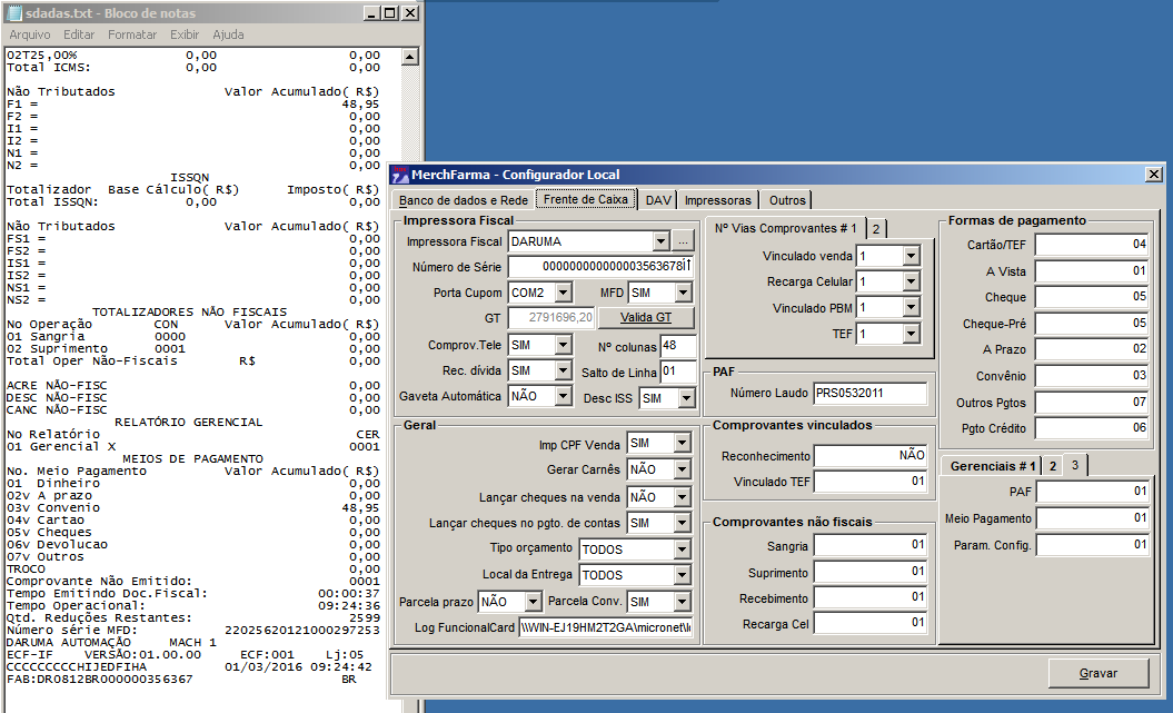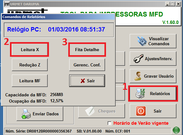 configuração da ECF Daruma, devera ser realizada através de uma leitura X pelo
