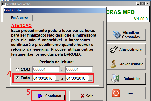 seguida no menu “Fita detalhe” Selecione a data atual e clique em continuar,