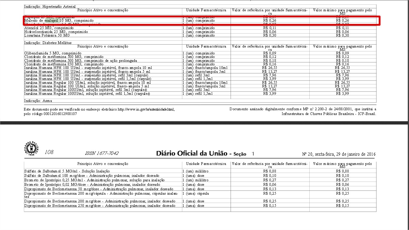 Para os produtos da Gratuidade a regra é um pouco diferente e o Ministério da Saúde também faz um controle a parte nas autorizações. Observe o produto Enalapril.
