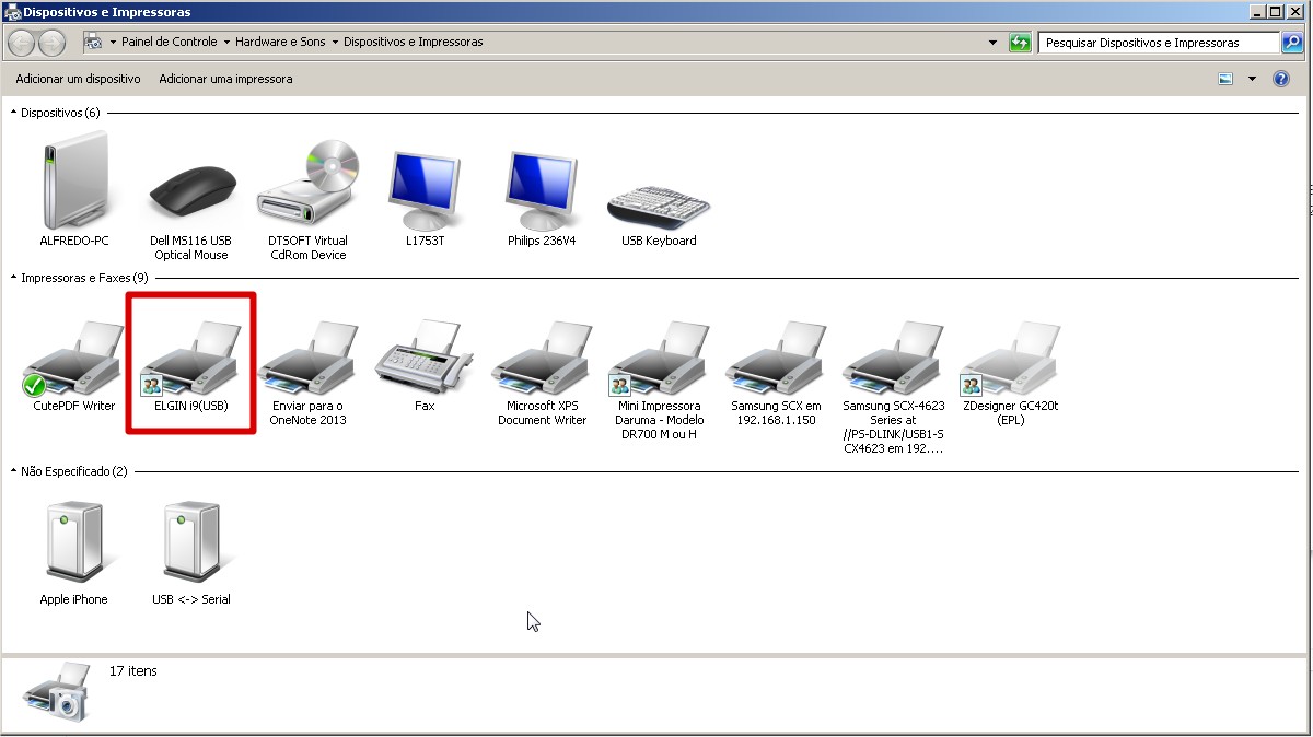 1. O drive da impressora deve ser instalado na máquina. Lembrando que por enquanto só temos o modelo I9 desenvolvido.