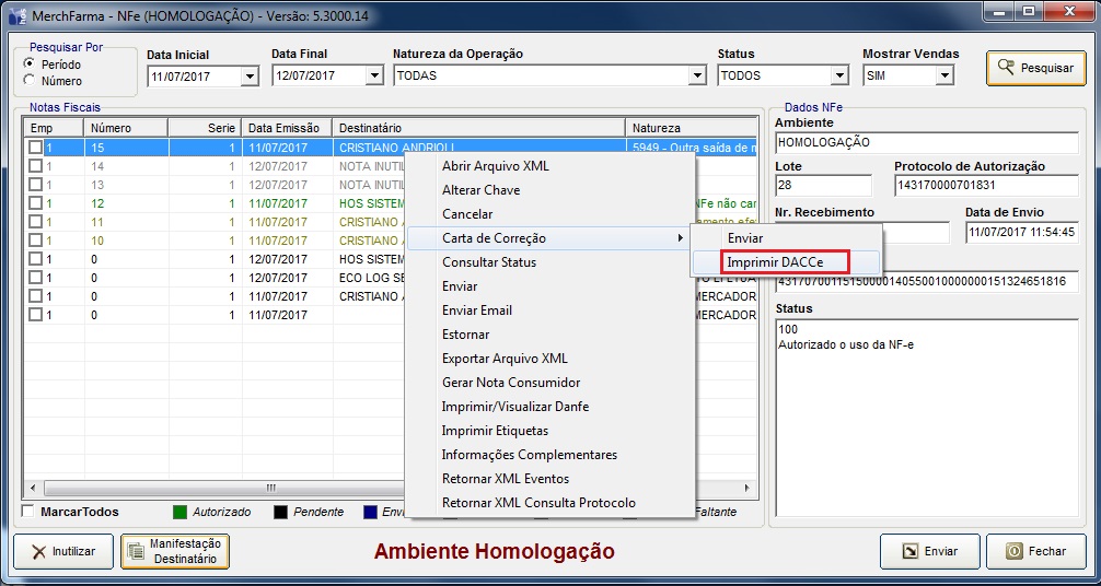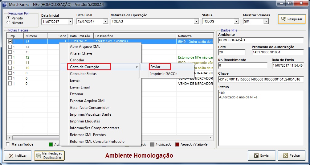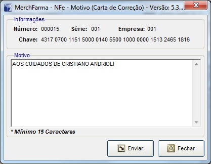 Para os estabelecimentos emitentes de NF-e foi criado o serviço da Carta de Correção Eletrônica (CC-e) e já está implantado em algumas Secretarias de Fazenda e nas duas SEFAZ Virtuais da NF-e (SVAN e SVRS), o contribuinte deve se informar em seu estado sobre esta disponibilização. As especificações técnicas da Carta de Correção Eletrônica (CC-e) estão definidas na Nota Técnica 2011.003 disponível neste Portal. Nos estados em que a CC-e ainda não foi implantada, a empresa emitente de NF-e poderá emitir Carta de Correção, em papel, conforme definido através do Ajuste Sinief 01/07.