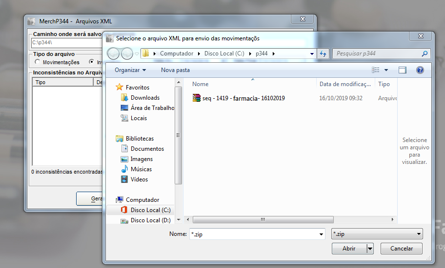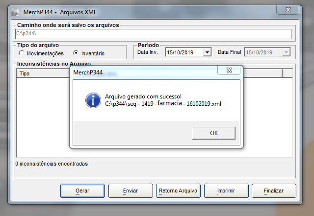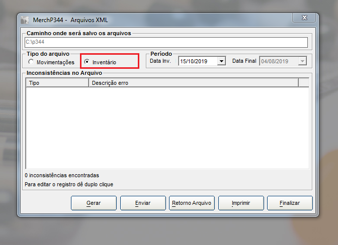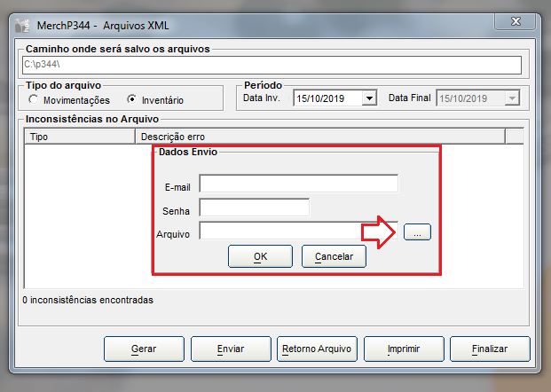 2º Passo: Marcar a opção Tipo do Arquivo: Inventário e informar a data de lançamento dos medicamentos.