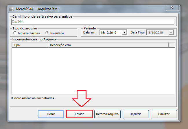 5º Se o inventário estiver correto, fechar a tela de conferência e clicar em Enviar