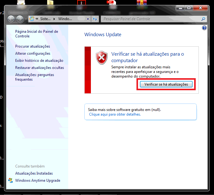 SoluçãoClique no botão “Verificar se há atualizações”