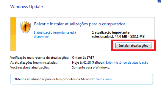 Após concluídas as atualizações reinicie o computador.