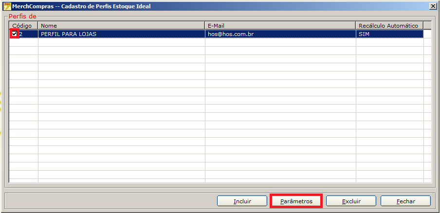 Assim, salve a identificação do perfil e vá em Parâmetros.