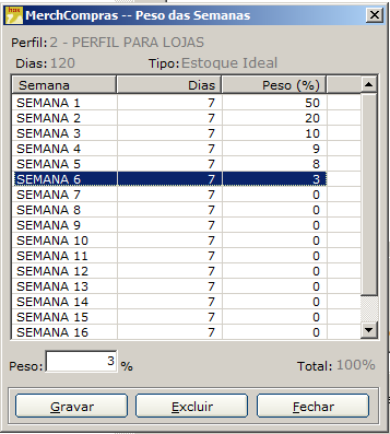 8. Pesos para a semana: é possível aplicar pesos diferenciados para as semanas, dando mais importância para as últimas semanas, assim, é possível prever produtos sazonais.