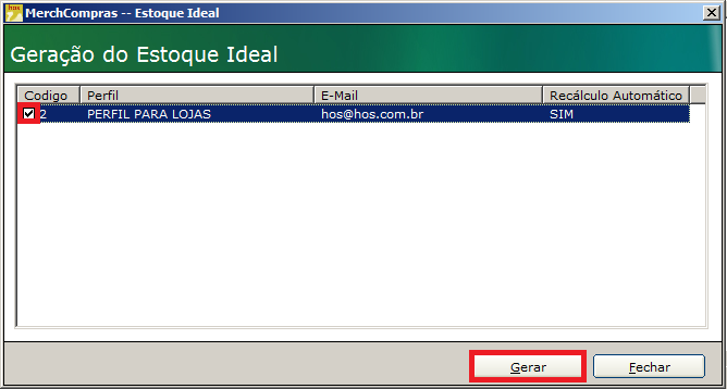 A partir que se tem o perfil de estoque ideal cadastrado e parametrizado, basta ir em: Estoques > Definição de Estoque Ideal. Assim, seleciona-se o perfil e clica-se em 'Gerar' que o sistema irá recalcular o estoque ideal baseando-se nos parâmetros salvos para o perfil.