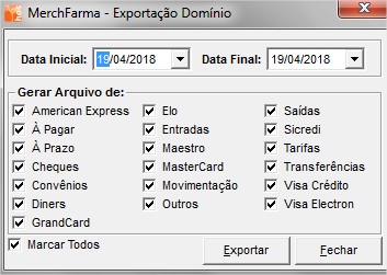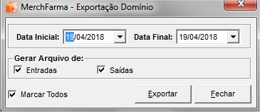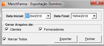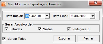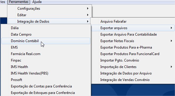 Caminho: HOSFarma > Ferramentas > Integração de Dados > Exportar Arquivos > Domínio Contábil