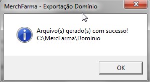 4° - Após a escolha do layout, basta informar o período qual deseja exportar as informações e selecionar 'Exportar', o sistema então, irá criar uma pasta com o nome de 'DOMÍNIO' dentro da pasta Mercfarma, conforme imagem abaixo.