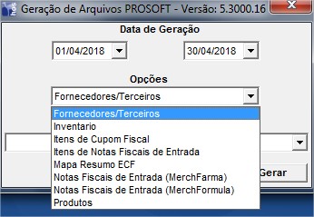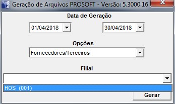 Caminho: HOSFarma > Ferramentas > Integração de Dados > Exportar Arquivos > Prosoft