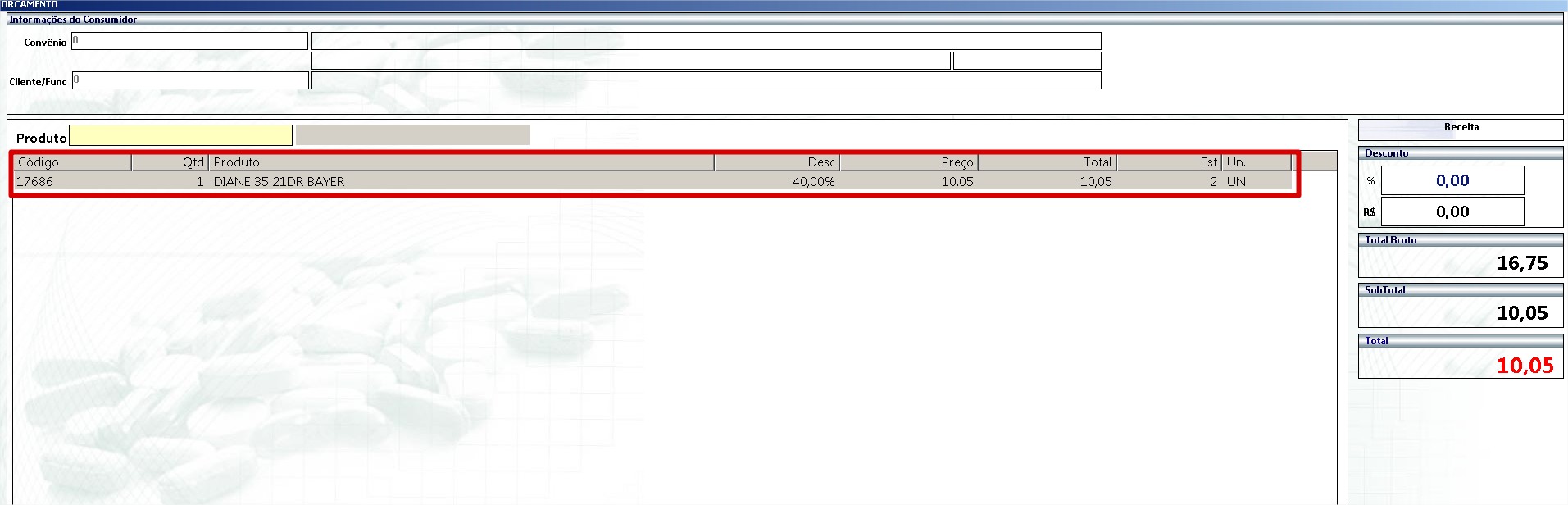 Primeiramente se deve identificar o produto no orçamento.