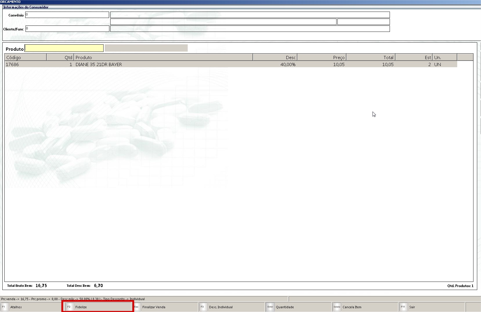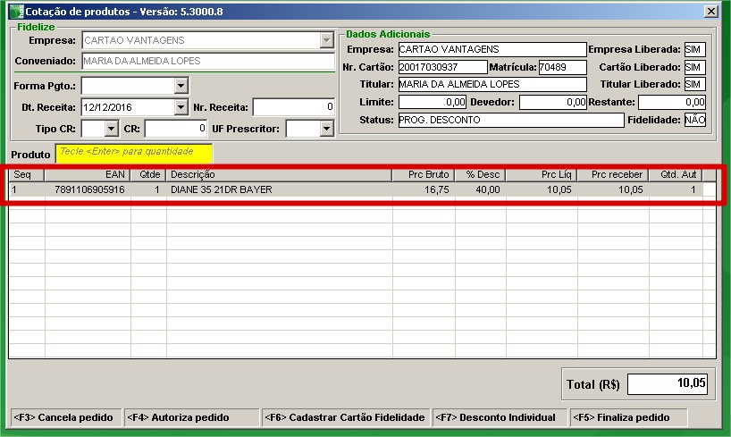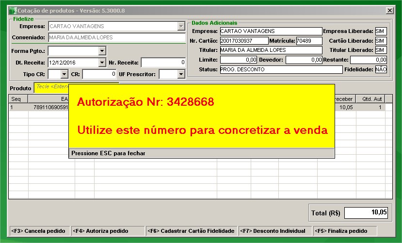 OBS: A regra de desconto funcionará SOMENTE quando as cotações forem realizadas pela tela de orçamento + F2. Na rotina Vendas/Autorização PBM/Fidelize/Cotação de Venda essa regra NÃO SE APLICA.