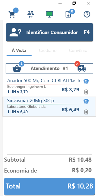 Através desse ícone será possível abrir simultaneamente mais uma tela de venda.