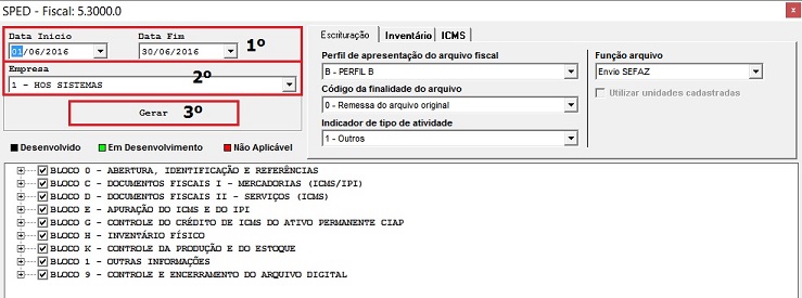 Obs: Caso o perfil do sped não esteja configurado, favor entrar em contato com o suporte da HOS na Opção 05