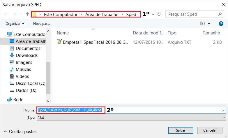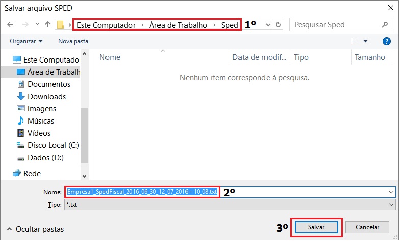 3. Selecionar um diretório para salvar o arquivo; Colocar um nome para o arquivo ou usar o default que o sistema gera e salvar