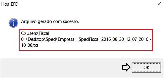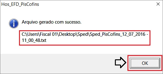 5. O sistema finaliza informando o diretório onde foi salvo. Ok.