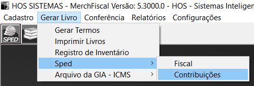 1. Acessar o menu: Gerar Livro > Sped > Contribuições