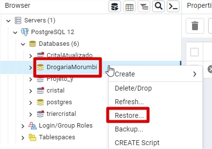 2.2 Agora com o botão direito do mouse em sua nova database, selecione a opção "Restore...".