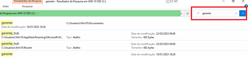 Uma breve pesquisa no disco local pela palavra-chave 'gerente' exibirá as demais sugestões.