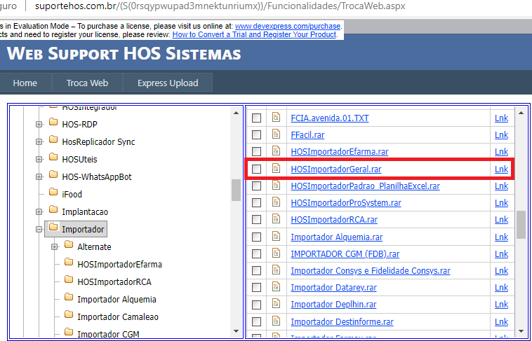 No trocaweb, buscar o arquivo HOSImportadorGeral.