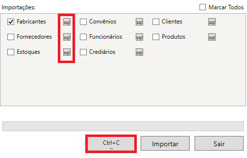 No botão Sql é possível consultar a SQL que o importador está executando.