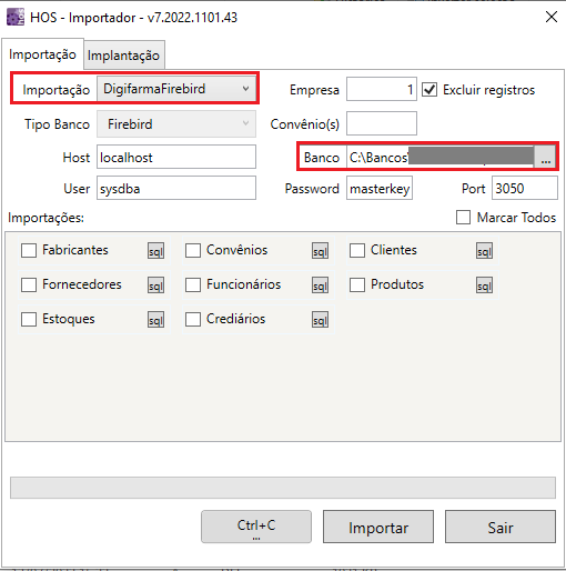 Selecionar o campo Importação: DigifarmaFirebird