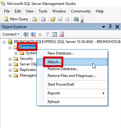 2.4 - Click Direito em 'Databases' e 'Attach'
