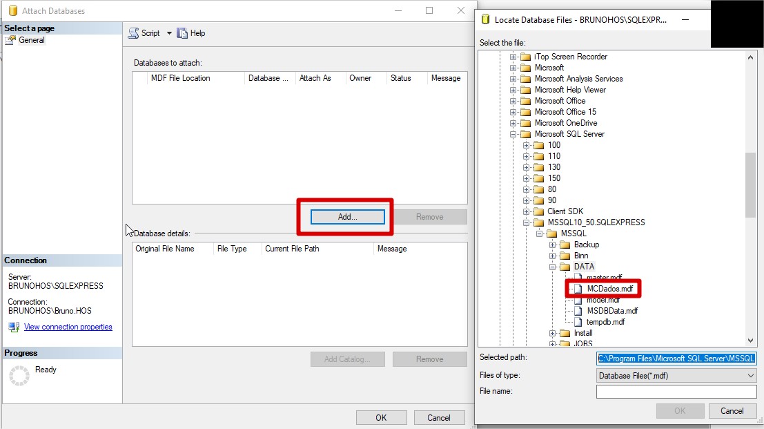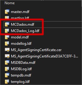 1 - Copiar os arquivos 'MCDados.mdf' e 'MCDados_Log_idf', Localizando-os da seguinte forma: