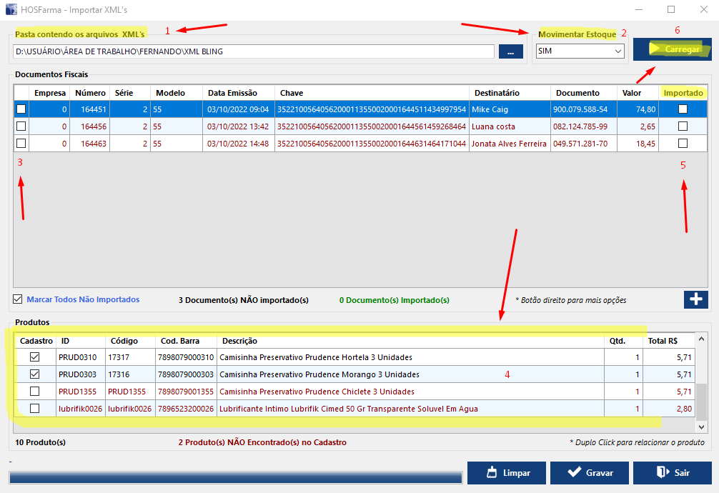 4 - Ao marcar a nota a ser importada, a ferramenta irá listar os produtos da nota;