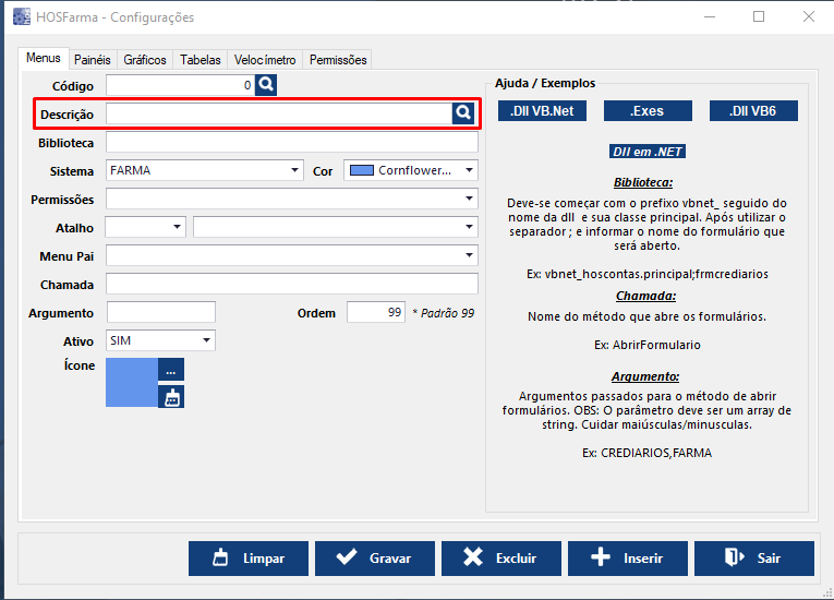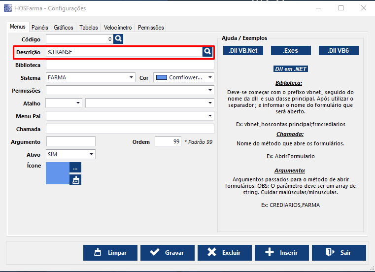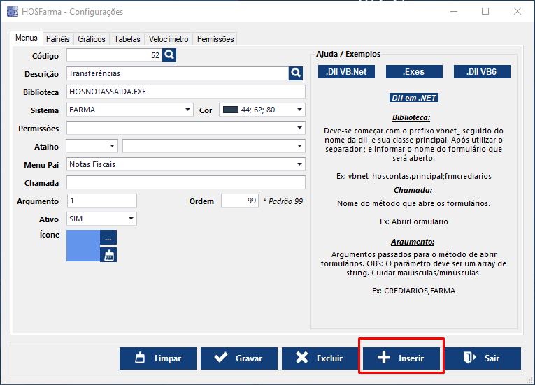 INSERIR ATALHO DENTRO DO SISTEMA