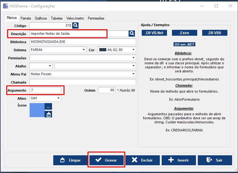 6.1 - Na aba Atalho, no campo destino, ao final de "C:\MercFarma\HOSNotasSaida.exe" inserir um espaço seguido de um número 7, ficando "C:\MercFarma\HOSNotasSaida.exe 7"