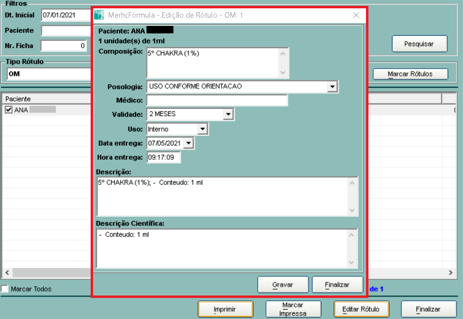 Caso se faça necessária alguma alteração no rótulo, podemos edita-lo.