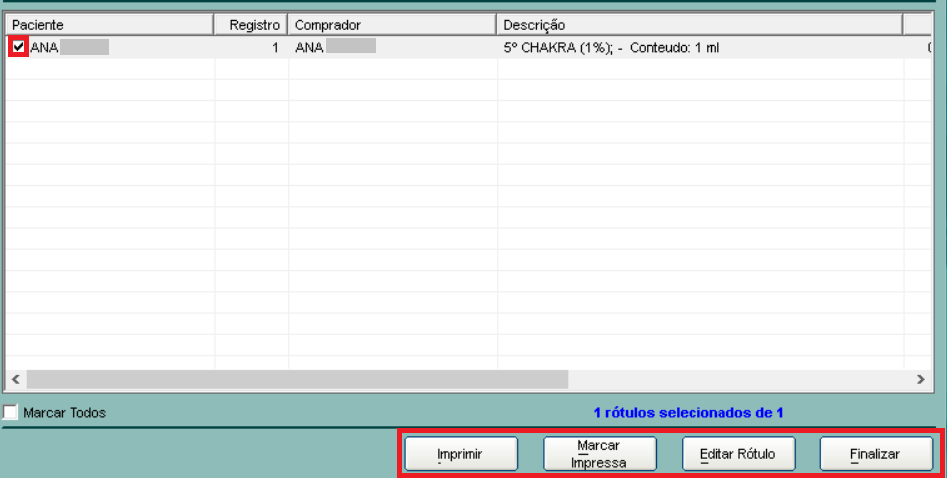 Para impressão, marcamos o rótulo e clicamos no botão Imprimir.