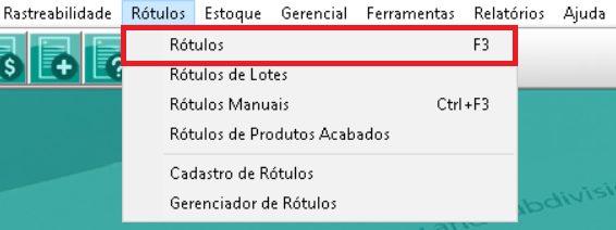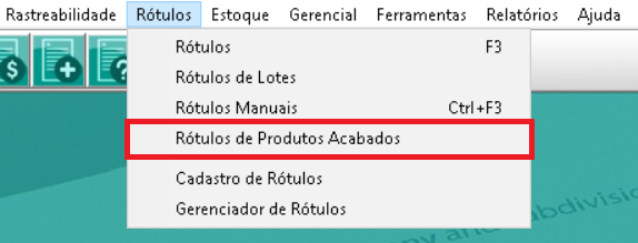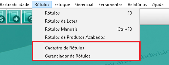Os dois últimos menus, são para cadastro e configuração dos rótulos.